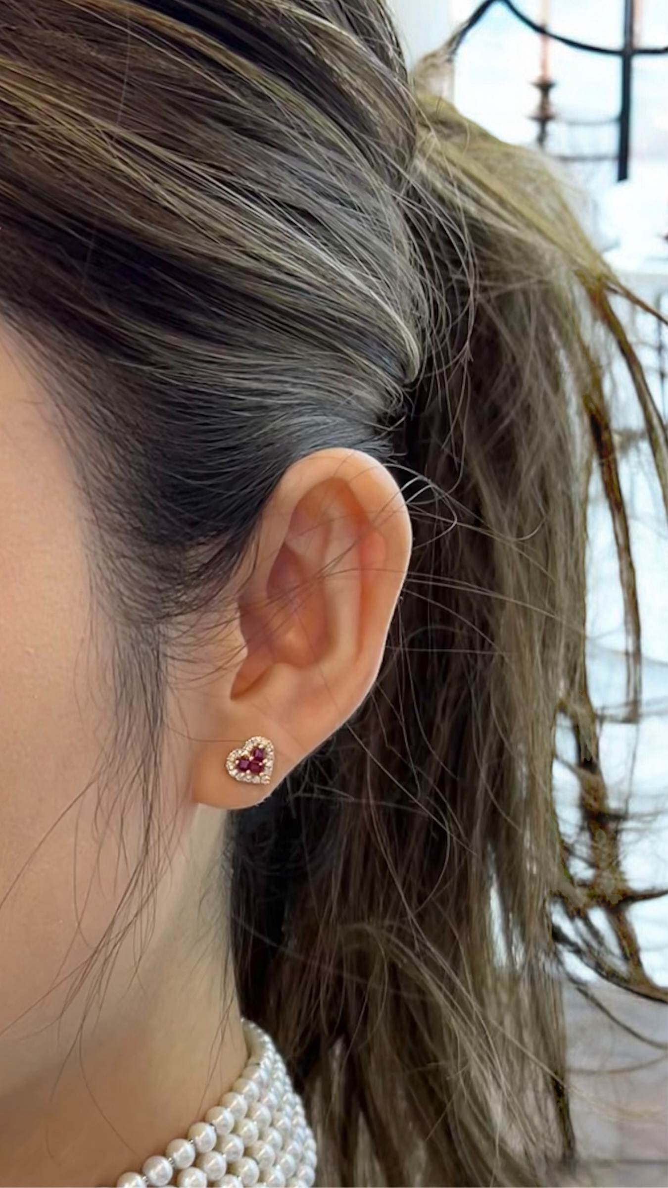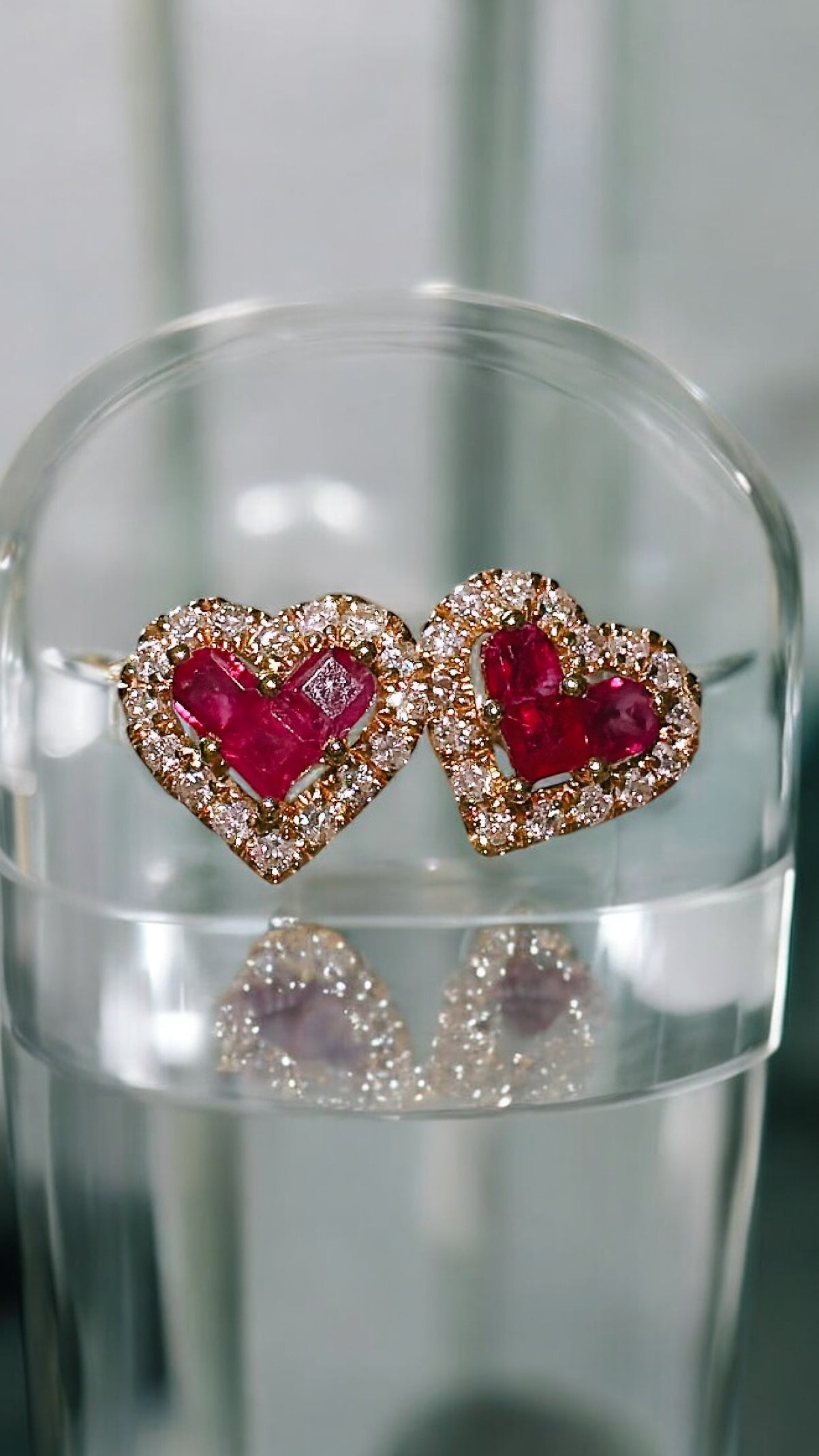 Introducing the *Ruby Rush Earrings*, a vibrant pair of heart-shaped studs that capture the passion and energy of deep red rubies. Perfect accessory for any occasion, travel essentials, adding a subtle boost to your look.