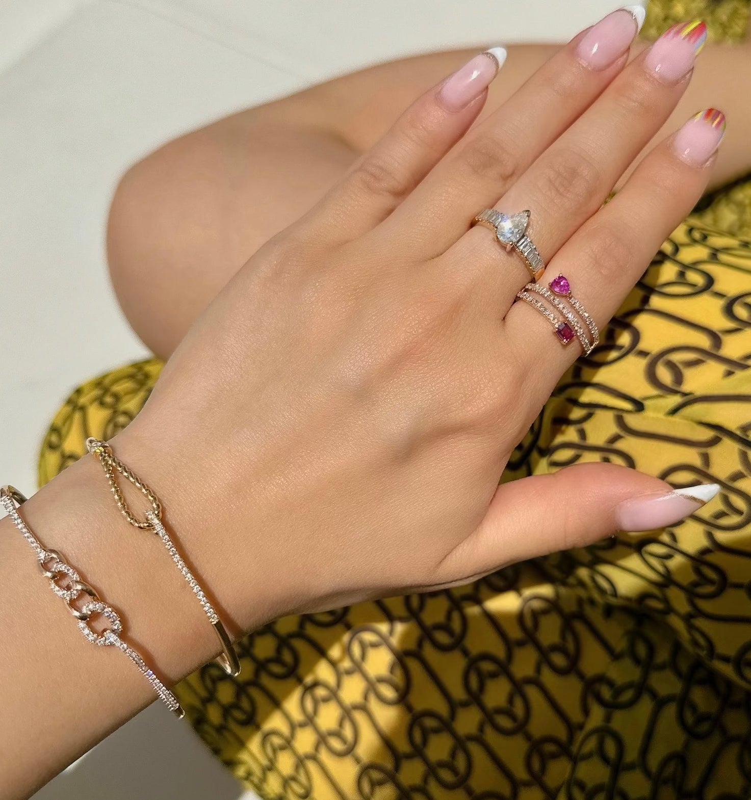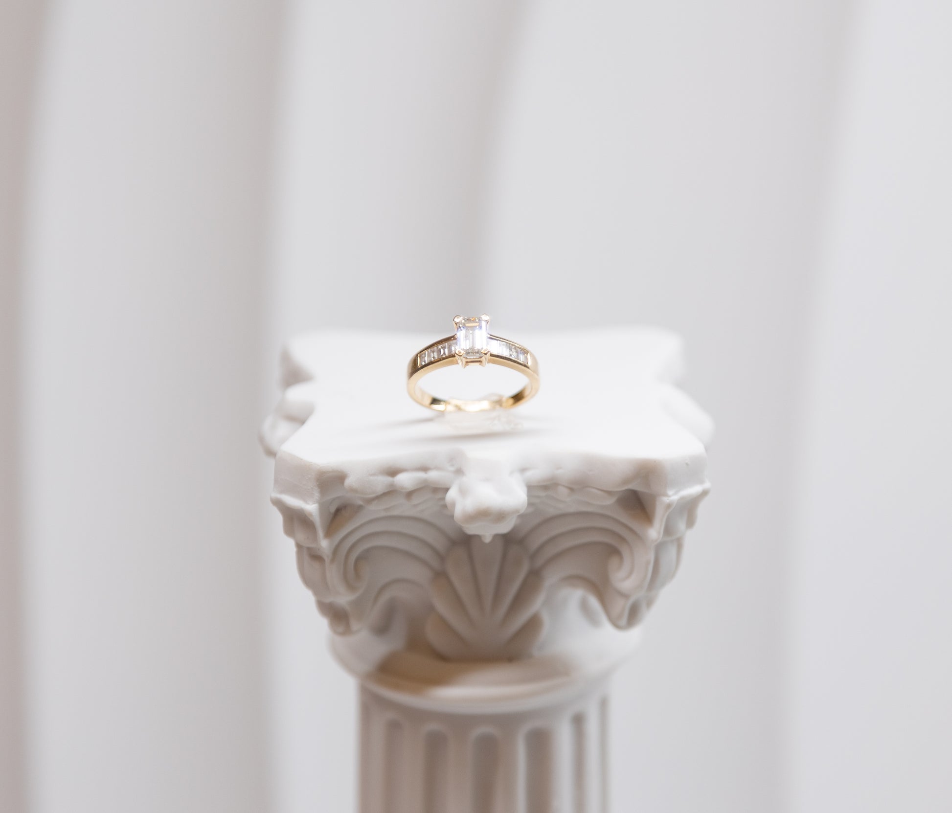 Inspired by the myth of Aphrodite's tear, this ring encapsulates both the beauty and the power of emotions. The tear-shaped diamond captures the essence of vulnerability and the bittersweet nature of love, while the baguette-cut diamonds evoke the order and symmetry that can emerge from even the most profound moments of human experience.